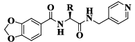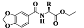 甘氨酸、肌氨酸、L-丙氨酸、L-丝氨酸、L-苯甘氨酸、L-缬氨酸、氯化亚砜、二溴甲烷、二溴乙烷、氧化铜、草酸二乙酯、1-萘甲醛、2-萘甲醛、2-萘甲酸、胡椒酸、苯并-1,4-二噁烷-6-羧酸、1,4-苯并二噁烷-6-甲醛、丙二酸、4-氨甲基吡啶、3-氨甲基吡啶、水合肼、咪唑、苯甲胺、苯胺、吡啶、哌啶、DIEA、TEA、HATU、PyBOP、 EDCI、HOBT、CDI均购自安耐吉化学公司;DMF、DCM、乙腈、无水乙醇、甲醇、乙酸乙酯、石油醚均购自天津大茂化学试剂公司;氯化钠、无水硫酸钠购自国药集团化学试剂有限公司。所有化合物的1H-NMR和13C-NMR使用Bruker(500MHz)或 Bruker(600MHz)核磁共振光谱仪测得,用氘代氯仿(CDCl3)或氘代二甲基亚砜(DMSO-d6)作溶剂(TMS为内标),化学位移用ppm表示,化学耦合常数(J)单位为Hz;熔点采用Büchi B-50 熔点测定仪